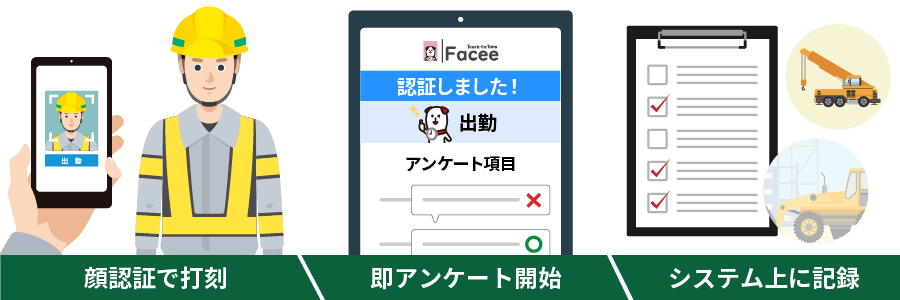 Facee(顔認証打刻)の画面上で回答したアンケートが
