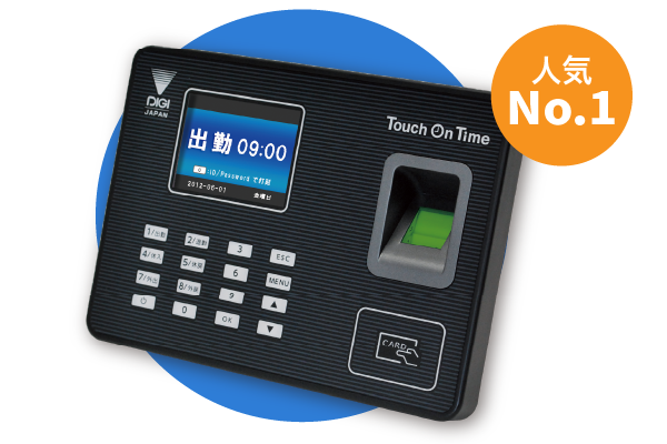 タッチオンタイムレコーダーは、指またはICカードをかざすだけで打刻できるので、年齢・国籍を問わず誰でも使いやすいタイムレコーダーです。
